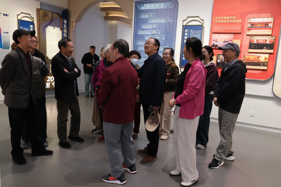 学校的发展凝聚着一代代复旦人的心血,老同志们曾是其中的参与者和建设者,老同志们驻足在一张张镌刻着复旦印记的照片和物件前,感慨万千,学校蒸蒸日上,这份“与有荣焉”的自豪感格外强烈,仿佛青春的奋斗有了延续的意义。