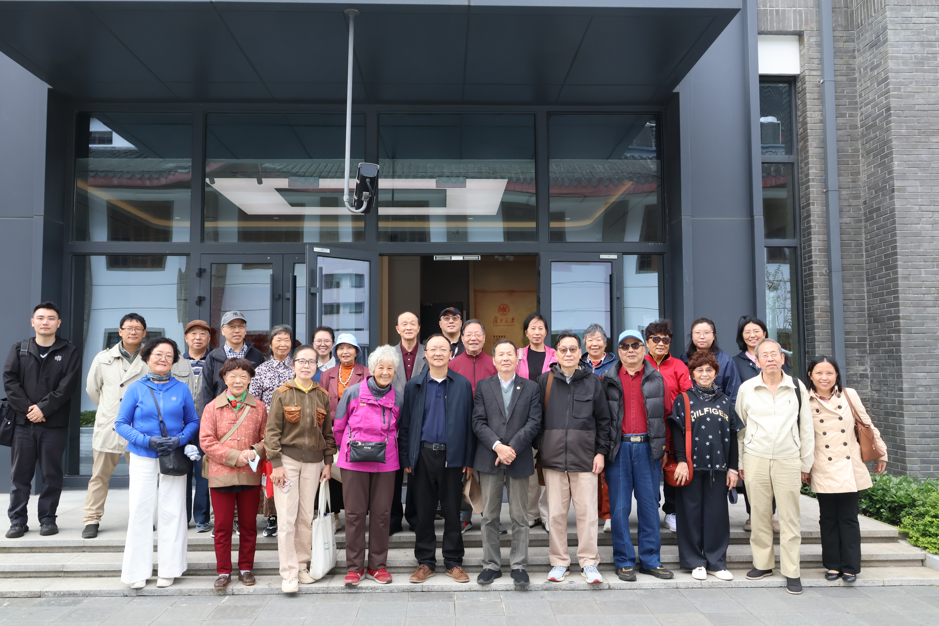 返校活动中,老同志们还前往500号寒冰馆,参观退休处即将乔迁的办公新址,在复旦文化地标相辉堂前合影留念。