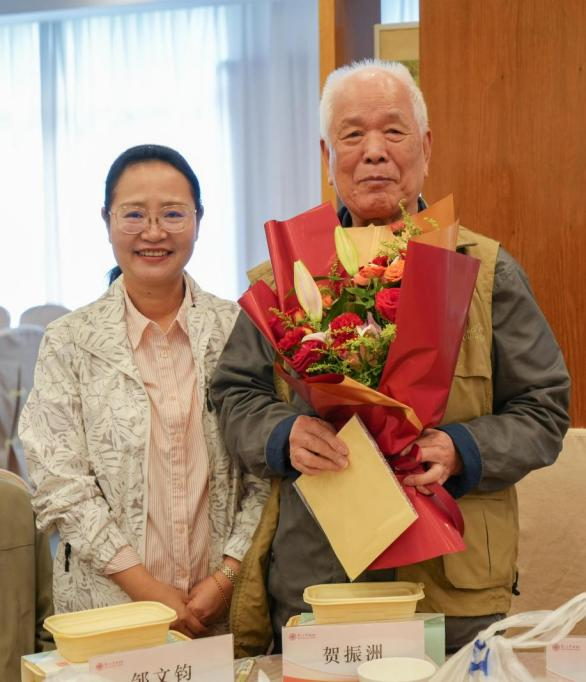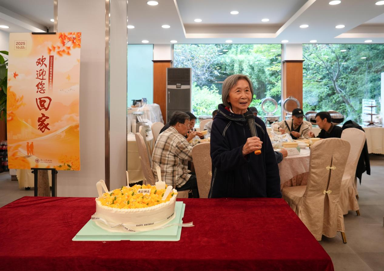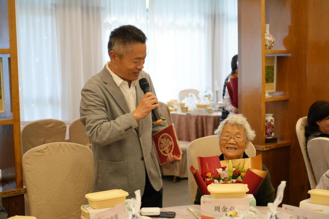 随后,寿星代表邹文钧老师、杨鹂老师与退休老师代表秦邦廉老师先后发言,他们分享了在图书馆工作的难忘经历,话语间满是对图书馆事业的热爱和对校园的深厚情感。
