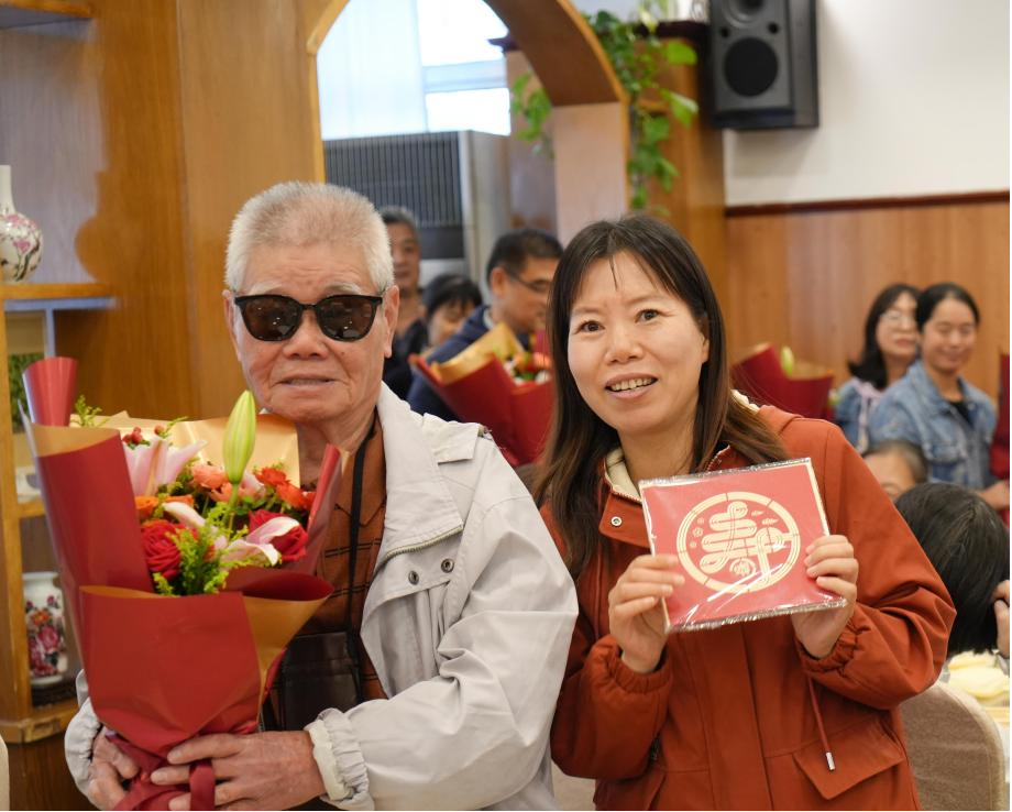 接着史卫华副书记宣读了逢五逢十退休老师的名单,侯力强书记、部门主任、工会主席、工会小组长们纷纷向寿星们献上鲜花和贺卡。