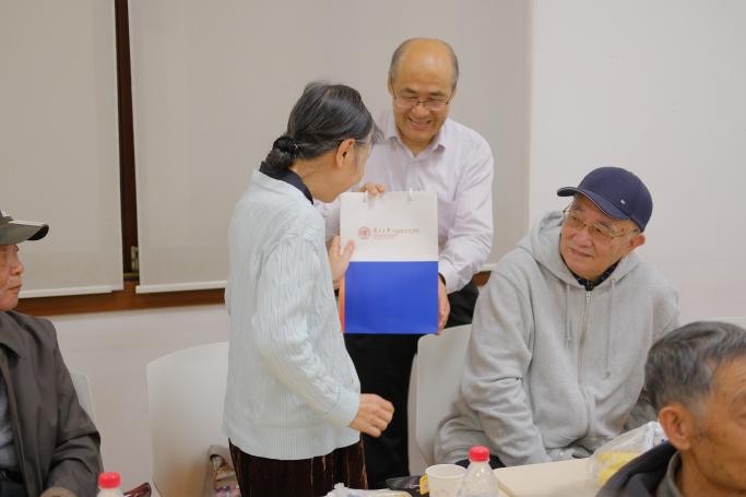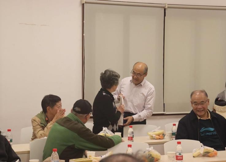 在茶话会上,学院为逢五、逢十的退休教职工集体庆祝生日,与所有在场老教师一同分享了饱含祝福的生日蛋糕。