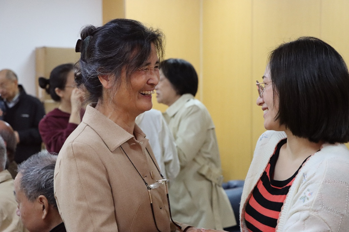 活动伊始,退休教师支部书记陆立强老师向返校的老教师们汇报了今年以来学院党委、退管分会上门慰问离退休教职工的情况,转达了未能到场老教师们对大家的牵挂与祝福。听闻老友近况,在场老师们也纷纷交流问候,关切之情溢于言表。虽不常见面,却彼此挂念,这份深厚的情谊,让大家倍感温暖。