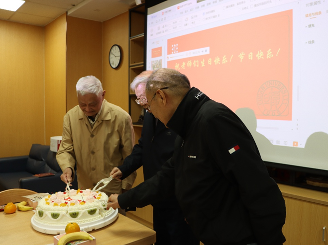 接着,学院为逢五逢十寿辰的老教师们集体庆生。老教师们齐唱生日歌,向寿星们送上最美好的祝愿。寿星老师切蛋糕、合影留念,现场气氛愉快祥和。