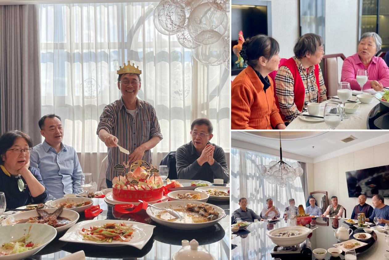 换届会结束后大家一同前往江湾食堂用餐,大家围坐交流,分享彼此近况,倾听他们对学院工作的建议。并为到场的70岁寿星郭建送上生日祝福,祝愿老同志们生活幸福、健康长寿。