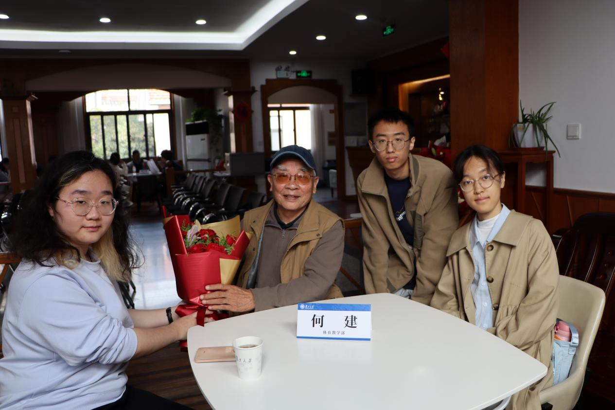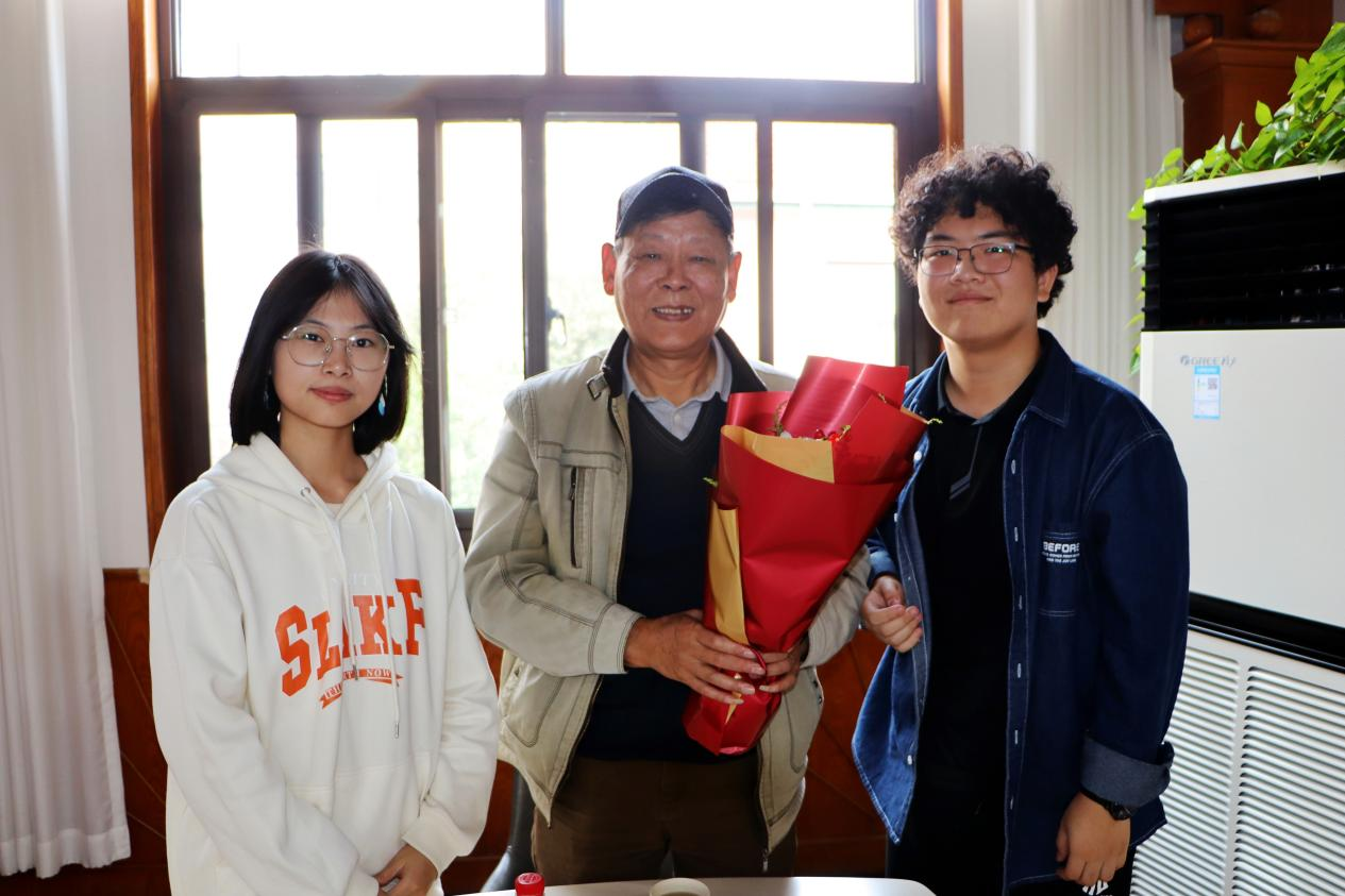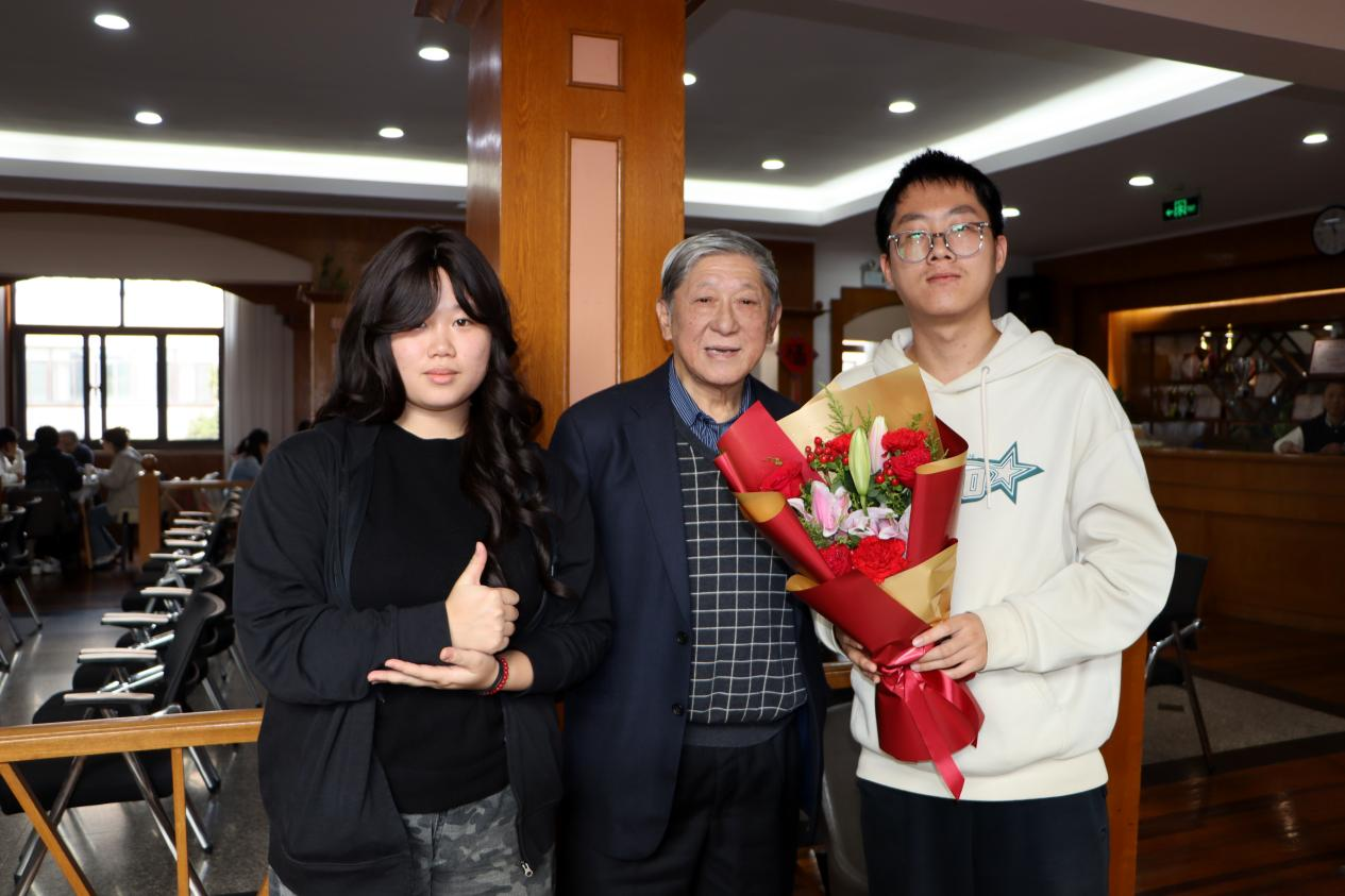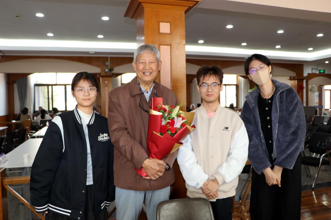 随后,启动会迎来温情的高潮,学生志愿者们依次向结对老教授献上鲜花。老教授们笑容和煦,与同学们亲切交谈,有的关心同学们的学业方向,有的分享执教岁月的点滴回忆。一场暖心的交流,链接着两代复旦人之间流动的情感与精神共鸣。
