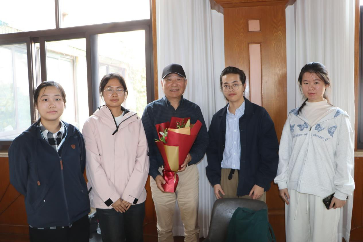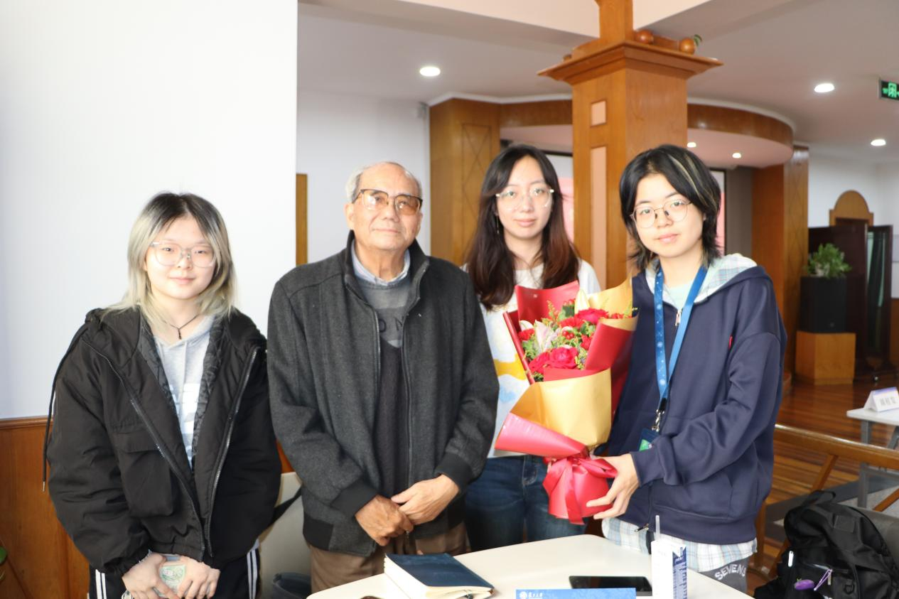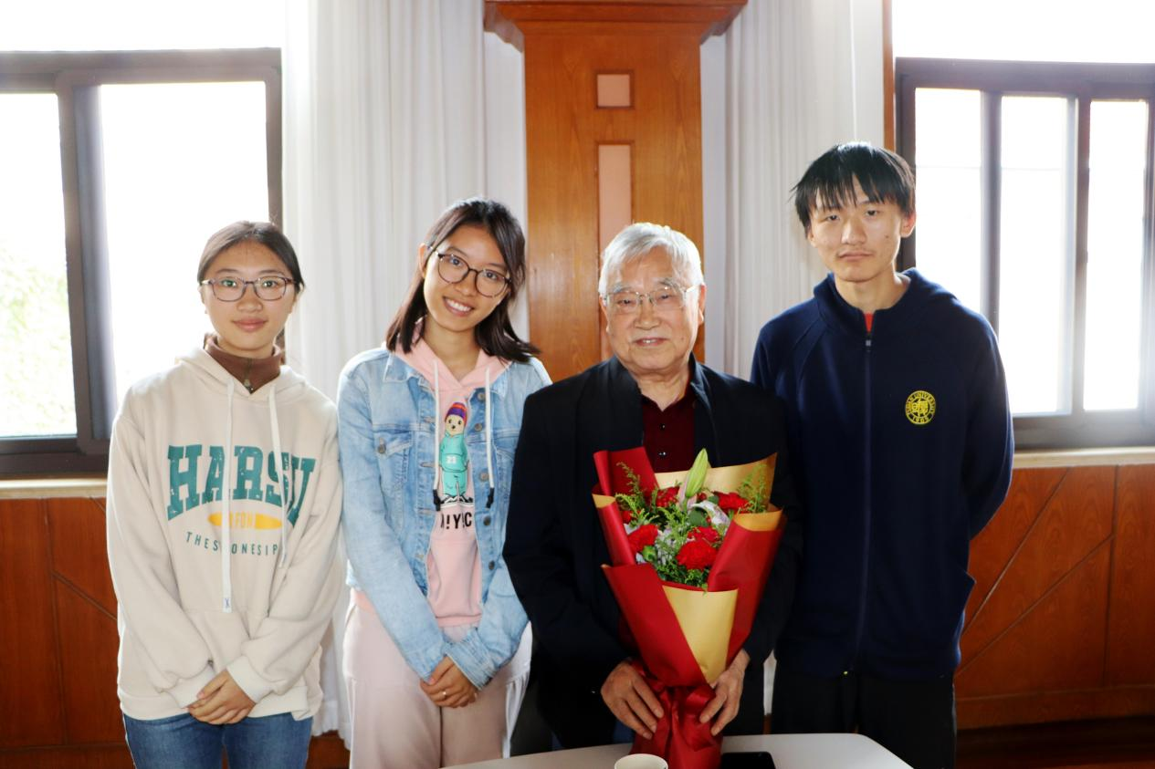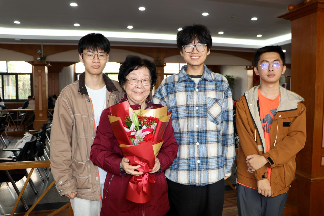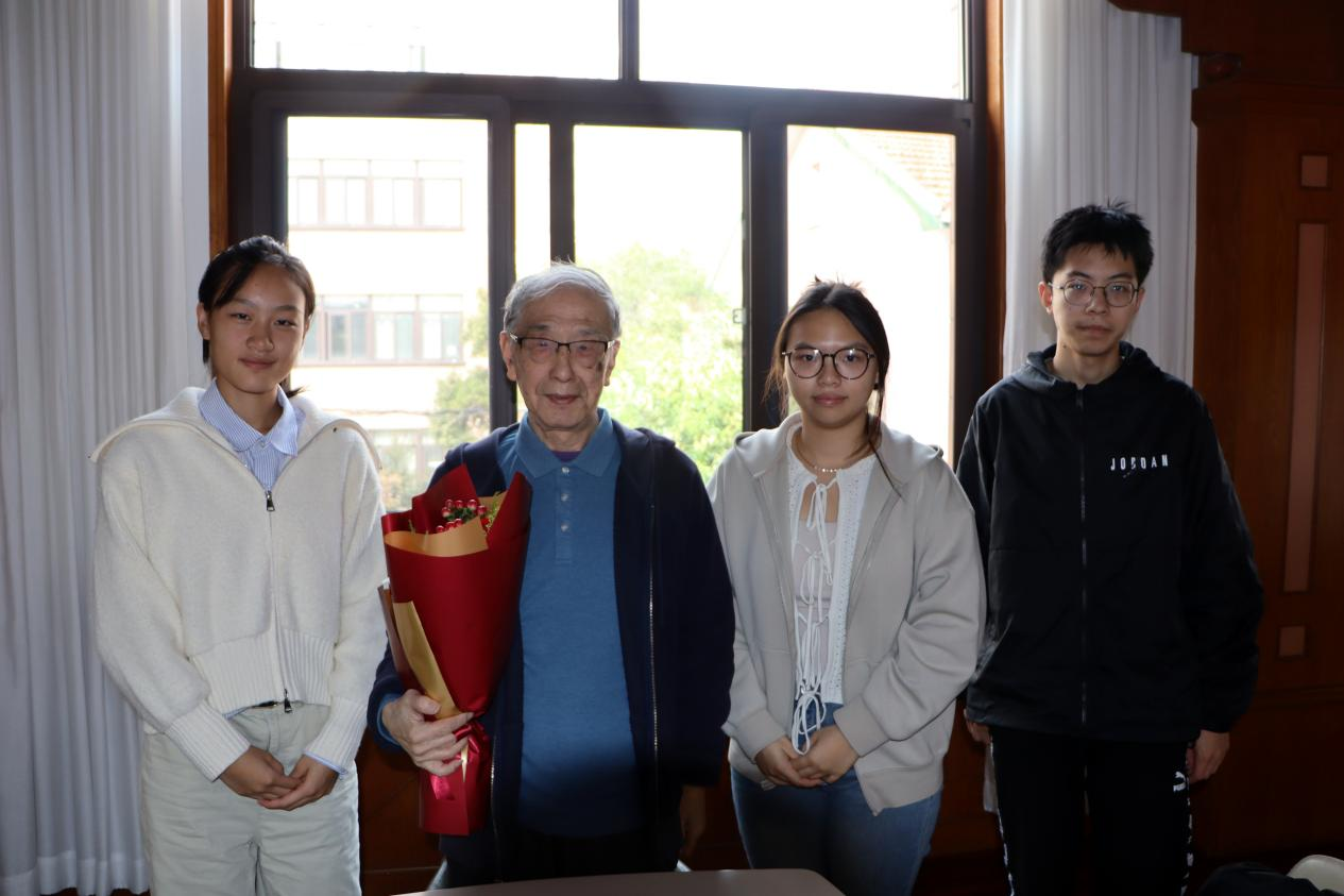 随后,启动会迎来温情的高潮,学生志愿者们依次向结对老教授献上鲜花。老教授们笑容和煦,与同学们亲切交谈,有的关心同学们的学业方向,有的分享执教岁月的点滴回忆。一场暖心的交流,链接着两代复旦人之间流动的情感与精神共鸣。