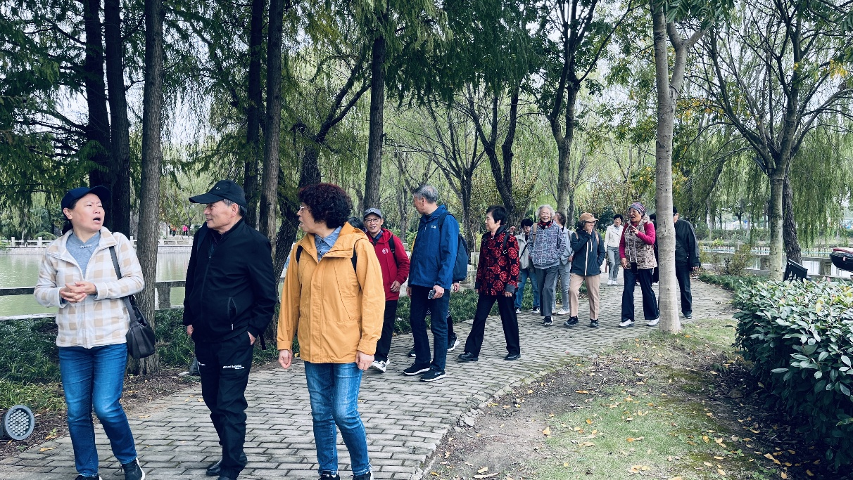 今日的乡村,枫红柳绿,水清鸭戏,走进原野,放飞心绪,融入大自然的,是甜甜的笑意。2025年11月12日,复旦大学生命科学学院40余人退休教职工,迎着冬日里的秋风,来了一次乡村一日游,游览目的地为上海市金山区辖内山塘镇的【廊下生态园】、【明月山镇】、【枫叶岛】。