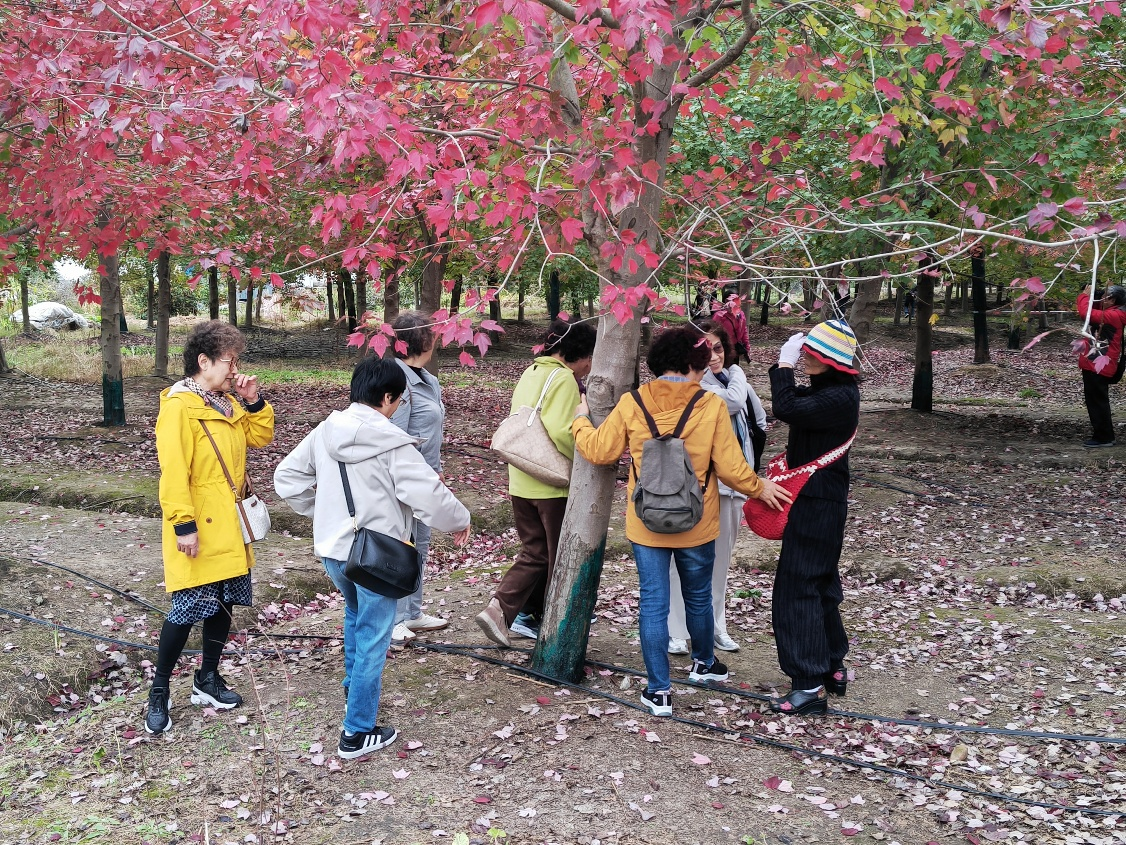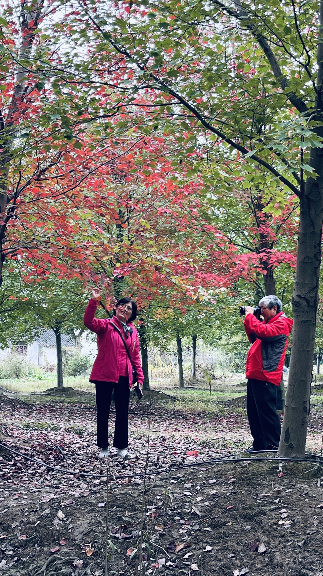 这个季节,枫叶岛上赏红叶,是老师们心仪的游览项目。可是今年的天公不作美,枫叶岛上的枫叶少红多绿,彰显了枫叶的倔脾气,虽然立冬时节早已过,上海的气温仍居高不下,枫叶只认温度,不识季节。好啊,你倔咱们老师的脾气更倔,你不红,我们自带红来的,比比看,看谁更红