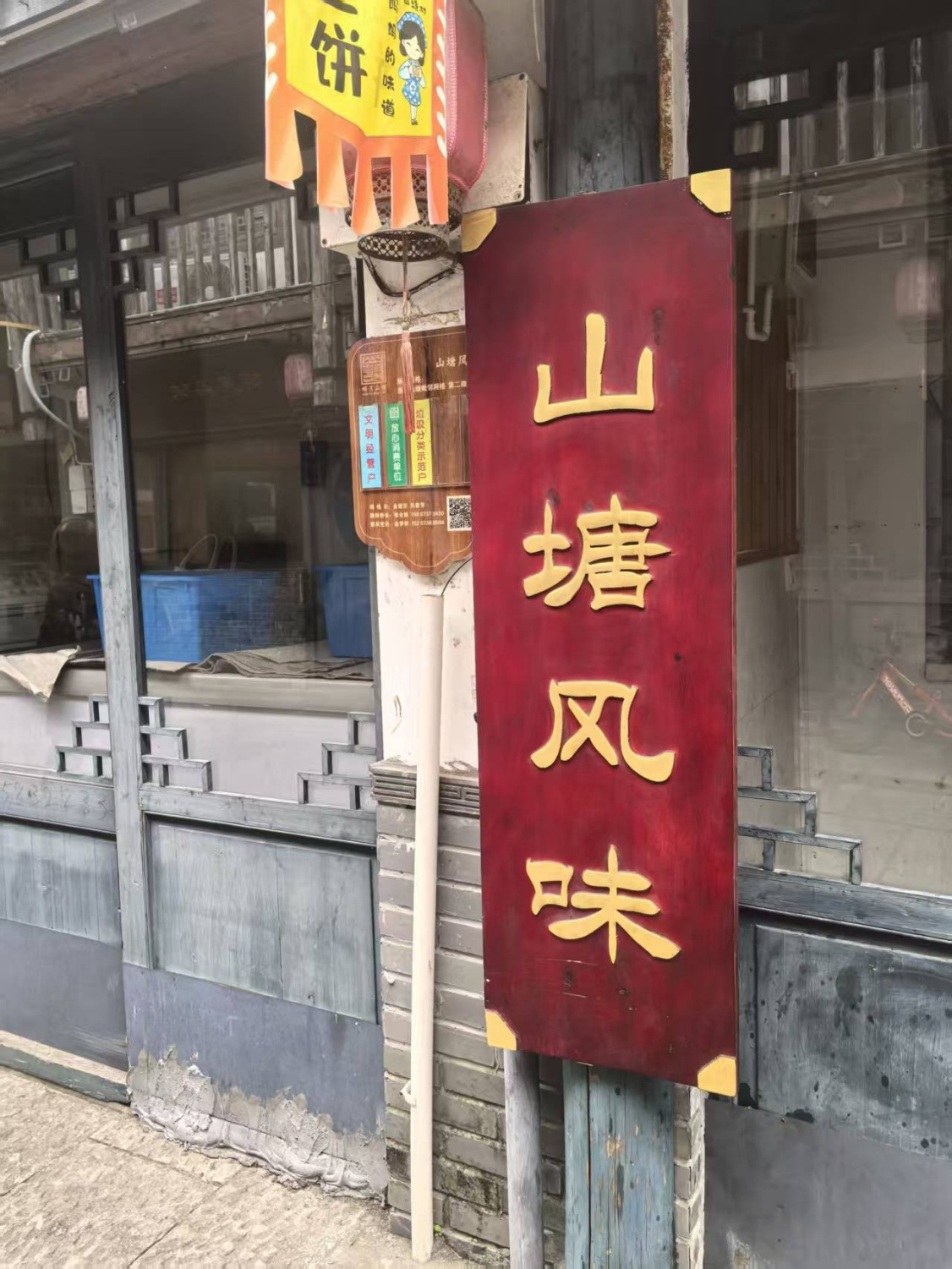 来到山塘,一条百年街区——山塘老街吸引了我们。大家可千万别把思绪飞到苏州境内的千年水街——山塘街上去。我们眼前的这条街,是位于上海金山和浙江嘉兴交界处的明月山塘。这条街在明顺治年间(1644-1661)就有了雏形,算起来距今也只有300多年。这条街最特别的是始建于1820年的山塘桥,是沪、浙界境的地标。