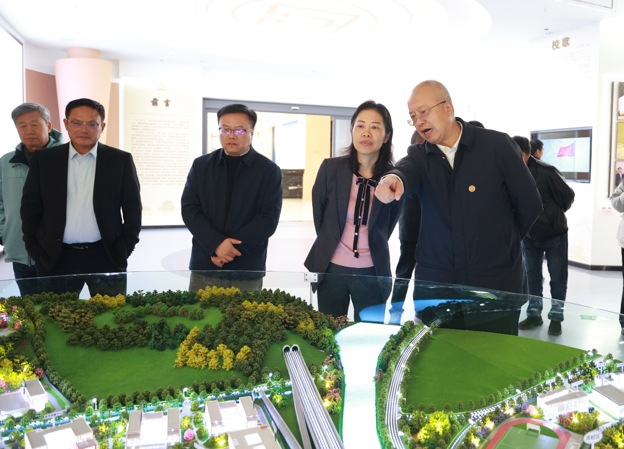 许征一行参观了滇西应用大学校史馆、“一站式”学生社区服务中心、实验实训中心,详细了解了该校的发展历程、校园规划、学校特色和办学情况。在实验实训大楼,许征看望慰问了我校赴滇开展银龄支教的基础医学院教授王海杰、谭玉珍,并与他们亲切交谈,细致了解其在滇的教学与生活情况。许征高度赞扬了银龄教师扎根西部、倾心育人的奉献精神,并对滇西应用技术大学给予的悉心照顾表示衷心感谢。