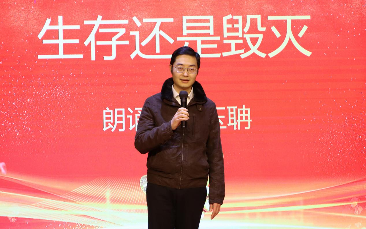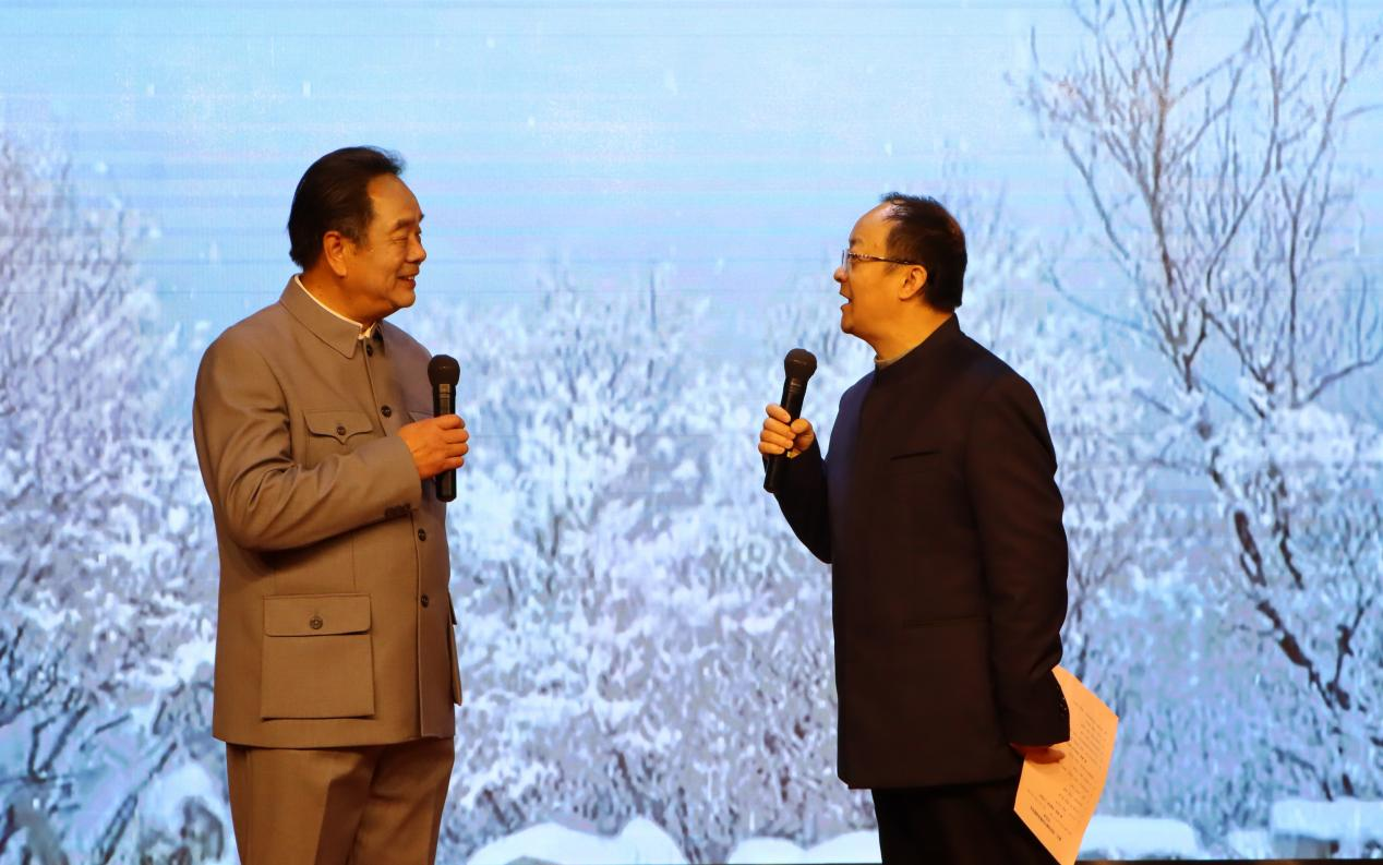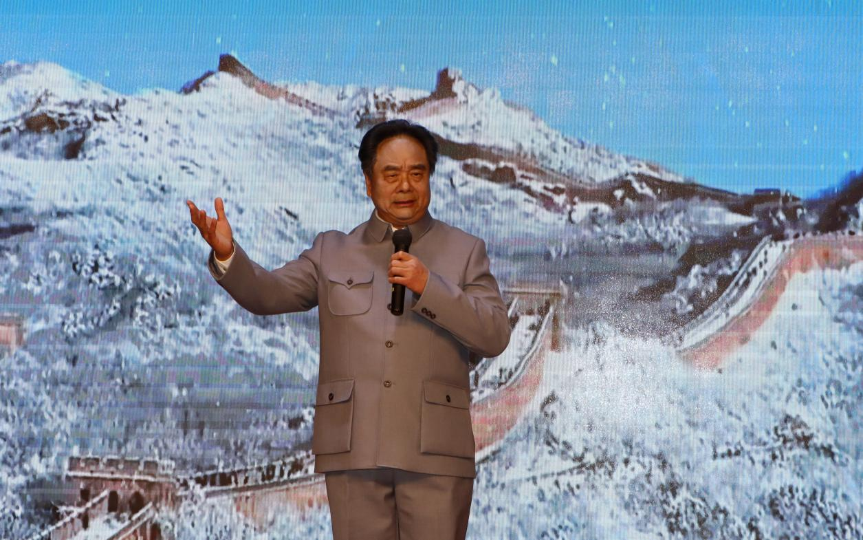 四季轮回,藏匿着自然与心灵的密码。首篇以“诗意四季·心灵回声”为主题,带领观众漫步于时光的韵律之中。郑召利老师深沉演绎《红玉米》,在质朴诗句中触摸岁月温度;骆志毅老师以雄浑之声朗诵《沁园春·雪》,尽展北国风光的壮阔与历史豪情。活动中,周桂发老师即兴表演了周恩来总理1974年国庆招待会祝酒词片段,真挚情感令满场动容。