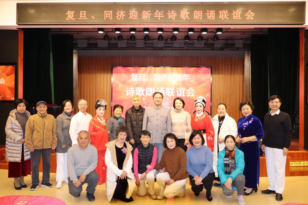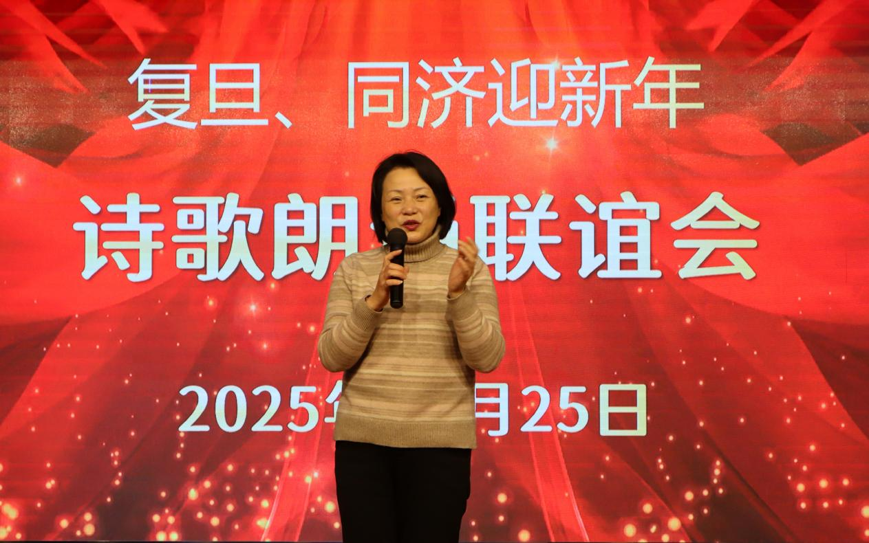 12月25日下午,冬日暖阳洒满校园,复旦大学校工会靳以剧场内诗音缭绕、温情洋溢。由复旦大学与同济大学联合举办的“迎新年诗歌朗诵联谊会”在此举行,两校退休教职工、在职教师及诗歌爱好者八十余人齐聚一堂,以诗会友,以声传情,共同迎接新年的到来。