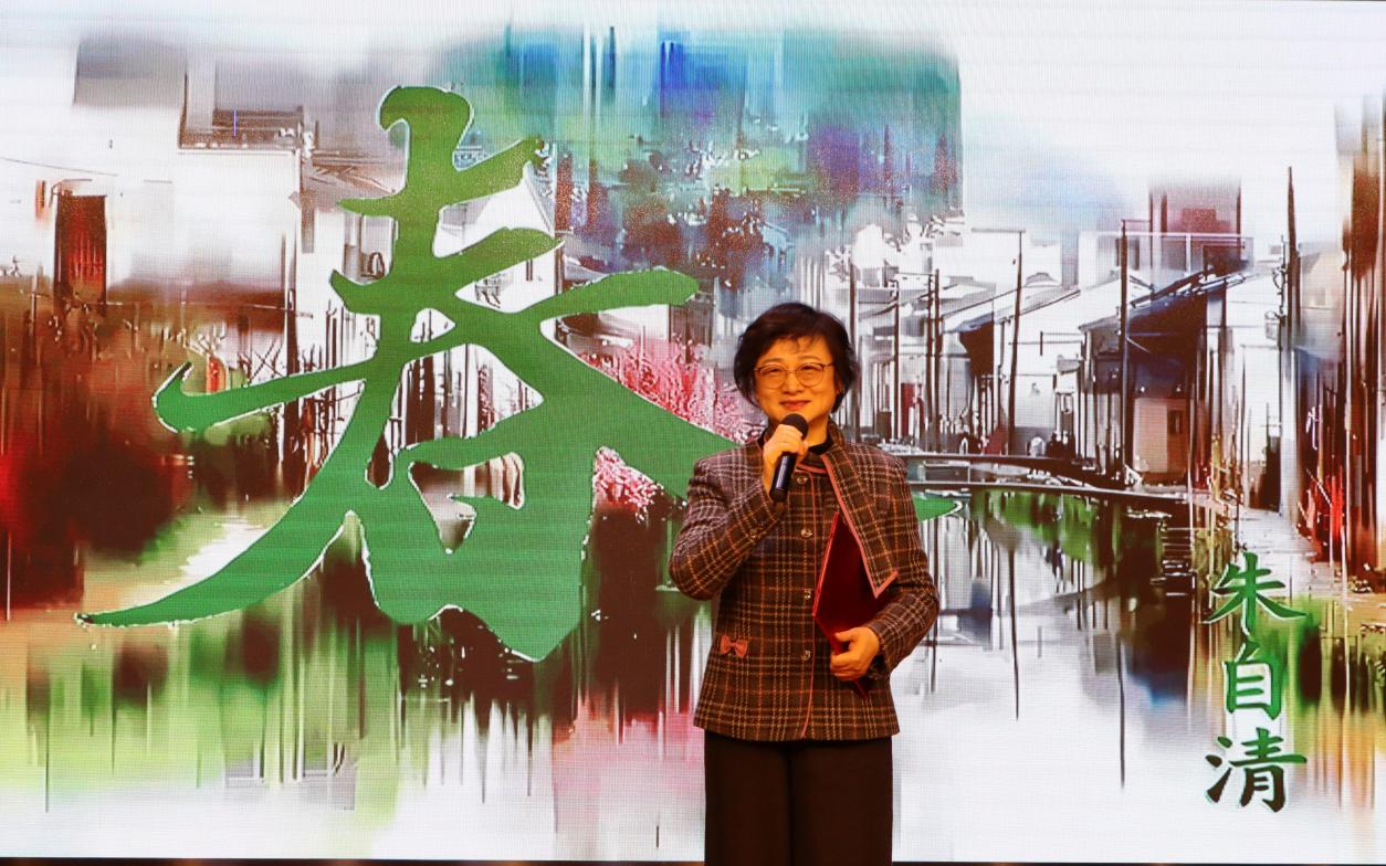 随后,詹璐老师带来的《海棠花祭》婉转深情,王丽军老师的《春》轻盈明媚,勾勒出一幅生机盎然的春日画卷。朱旭东、柳湘华、蒋以琤、马波四位老师合作的情景剧朗诵《秋天的怀念》,通过表演传递真情,感人至深;严海燕老师的《告别秋天》温柔舒缓,顾天珍老师的《我想把秋天寄给你》则寄寓着跨越时空的牵挂。四季在声音中流转,情感在诗句间共鸣。