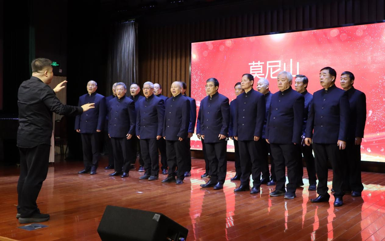诗歌源于生活,也点亮生活。第三篇章“城韵文心·生活之美”从多元艺术形式中汲取灵感。退休教工合唱一团带来的男声小组唱《莫尼山》,让人感受到了山川的辽阔与心灵的宁静;金雯老师朗诵《中文有多美》,展现出汉语的韵律与底蕴,尚祥华、张玉美老师的越剧《孔雀东南飞·洞房》选段,唱腔动人,情意绵长。