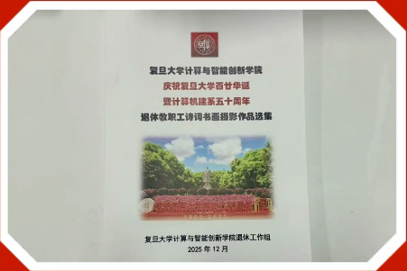 经过许多退休教师职工的积极投稿和学院退休工作组的努力,在学院党政的大力支持下,编辑印制了一本200余页的《复旦大学计算与智能创新学院庆祝复旦大学百廿华诞暨计算机建系50周年退休教职工诗词书画摄影作品选集》,在此茶话会上,这本选集发到大家手上,这是我院退休教职工积极开展文化养老的记录,也是一本珍贵的资料。