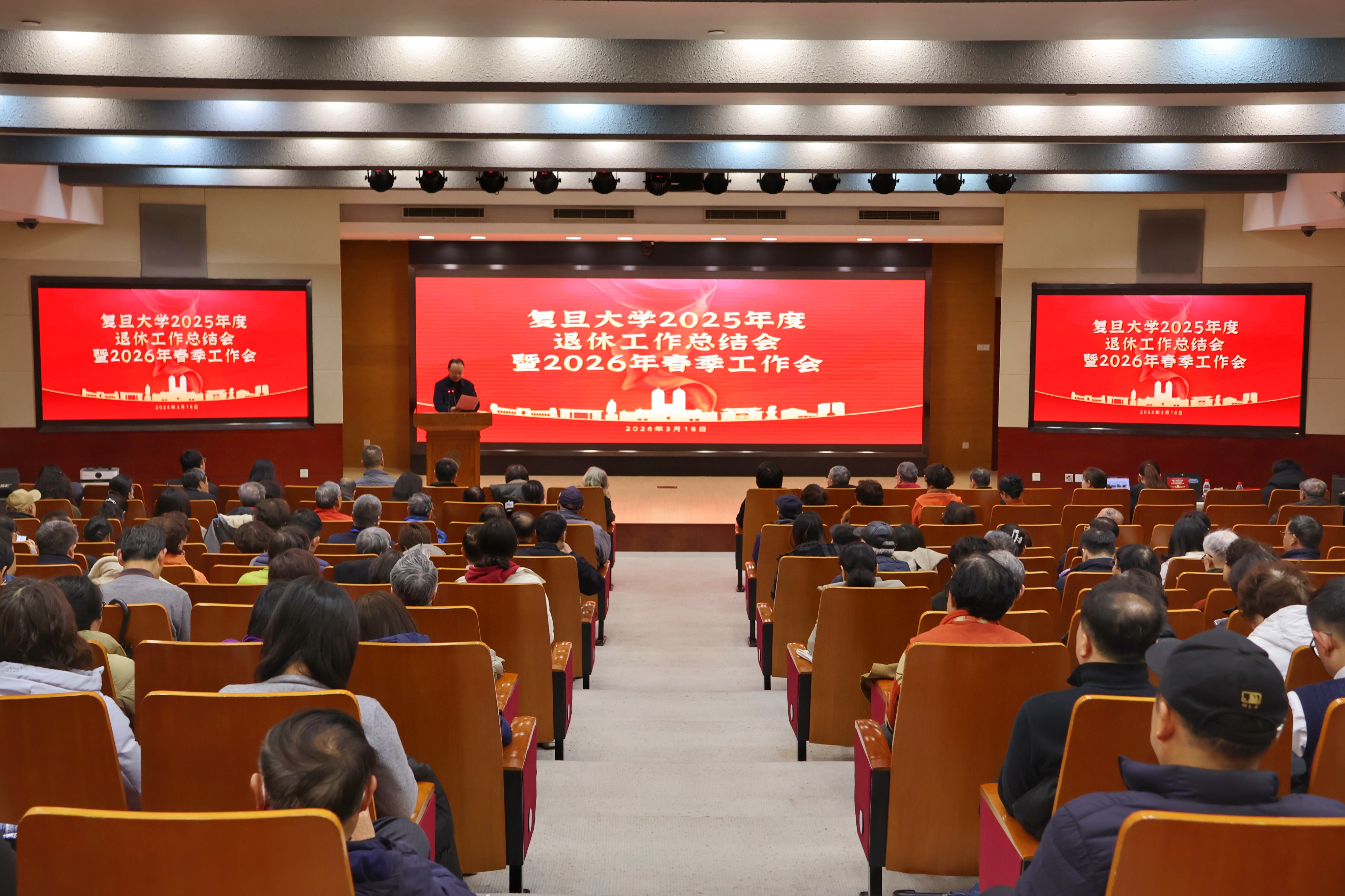 3月18日上午,复旦大学2025年度退休工作总结暨2026年春季工作会议在光华楼东辅楼102报告厅举行。校党委副书记、校老龄委主任钱海红出席会议并讲话。校关工委常务副主任、校老(退)教协会会长陈立民、枫林校区老干部党总支书记程刚同志应邀参会。校老龄委成员单位负责人,各退管分会负责人、联系人、退管小组长、退休党支部书记、退休联络员,校老(退)教协成员、各单位老(退)教协分会会长、二级关工委委员共计200余人参加会议。会议由老干部党委书记、退休教职工工作处处长周桂发主持。