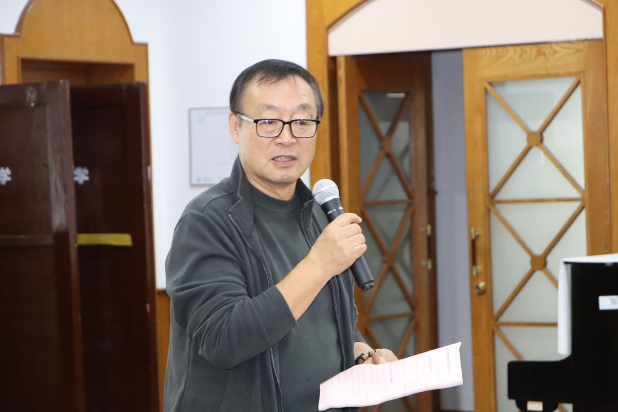 全部朗诵篇目圆满结束后,指导老师郑召利教授走上台前,对每一个节目进行了深入细致的点评与指导。他从文本理解、情感把握、声音控制、节奏处理等多个维度,逐一肯定了老同志们声情并茂的演绎,同时也结合具体篇目提出了宝贵的改进建议。郑教授温润中肯的话语,既有专业高度,又饱含对退休教工朗诵热情的真挚鼓励,令在场参与者受益匪浅,现场不时响起会心的笑声与掌声。